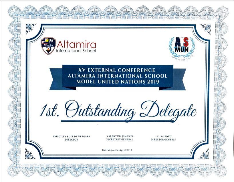 Delegado sobresaliente - AISMUN 2019